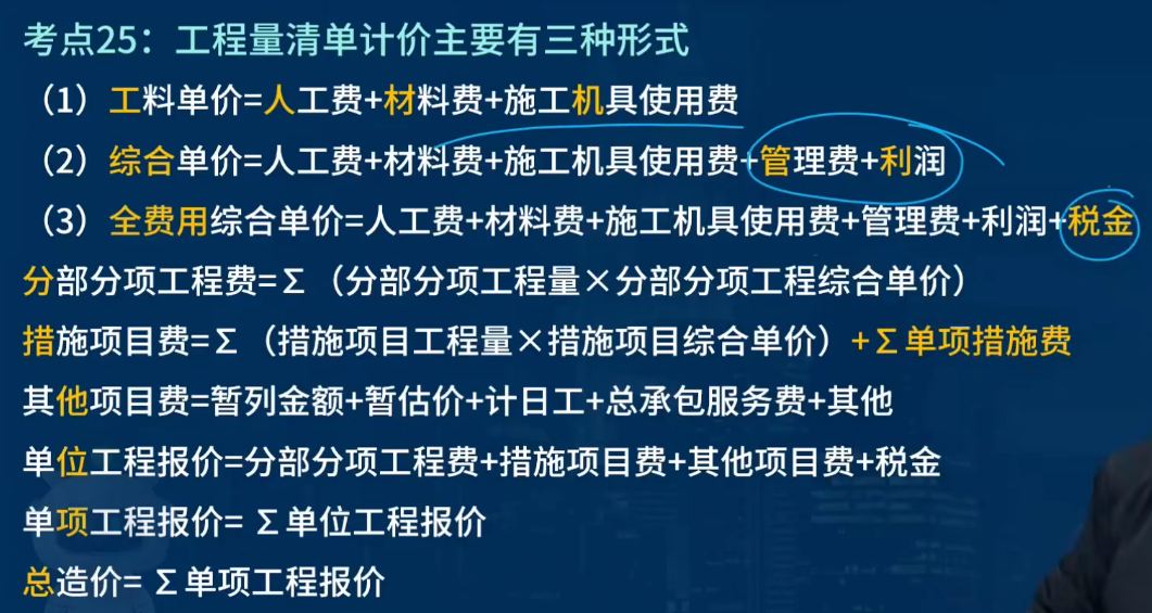 工程量清单计价的三种主要形式