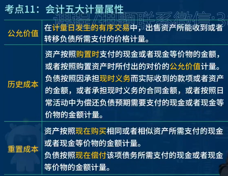 会计五大计量属性