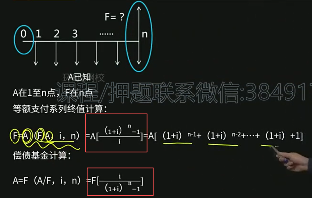 注意:此处的 “终值计算” 和 “偿债基金计算” 的简化公式(红框标注)仅适用于A在1至n点,如果A在0点,则不适用;
