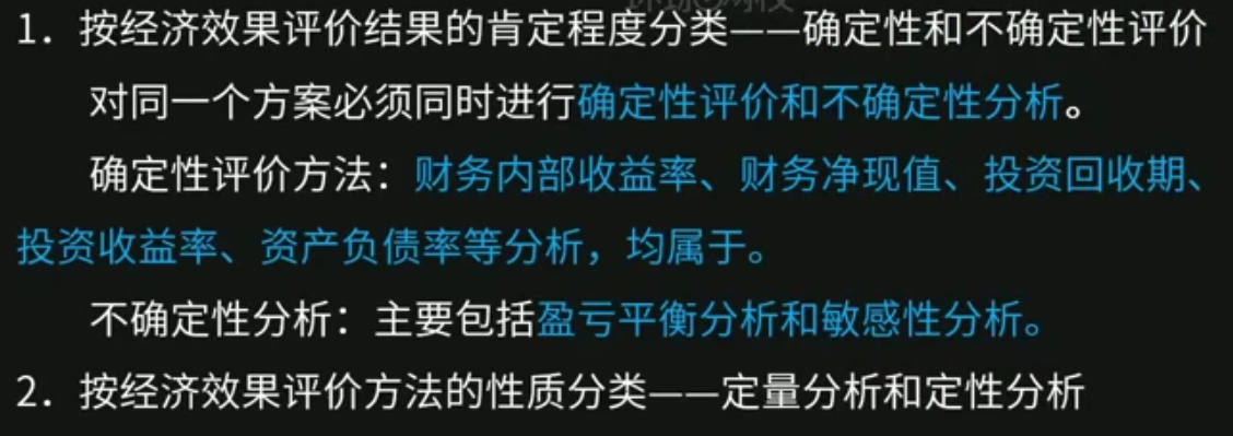 经济效果评价方法分类(了解)