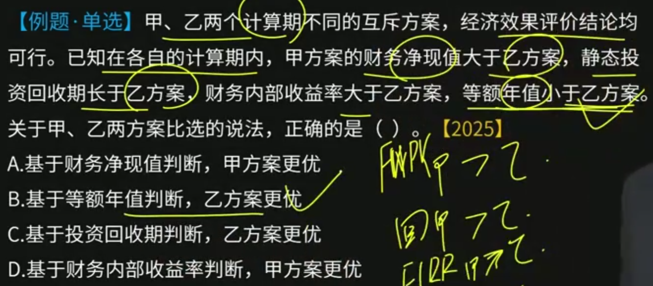 多方案比选(必会)