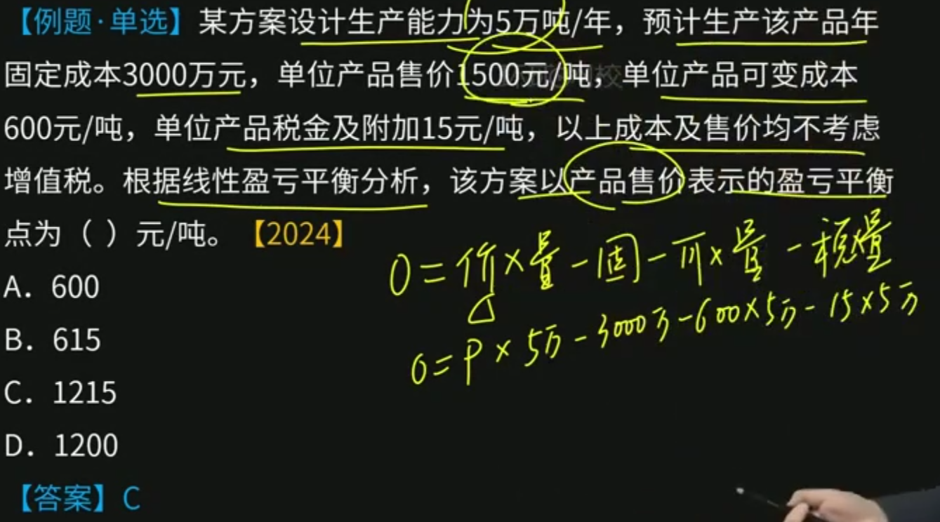 盈亏平衡分析(必会)