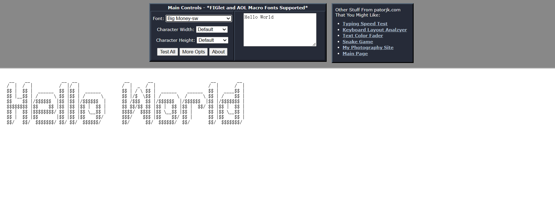 推荐(软件,可将图片转字符):https://ascgendotnet.jmsoftware.co.uk/